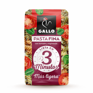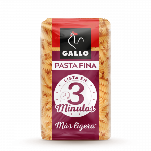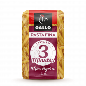¡La pasta de Gallo para disfrutar en un ya! Deliciosa gama de hélices, spaghettis y plumas de cocción rápida en 3 minutos. ¡Además gracias a su textura más suave y ligera tendrás una pasta perfecta para acompañar con carne, pescado o incluso disfrutarla para la cena! ¡ La Pasta Gallo más ligera para sentirte bien!