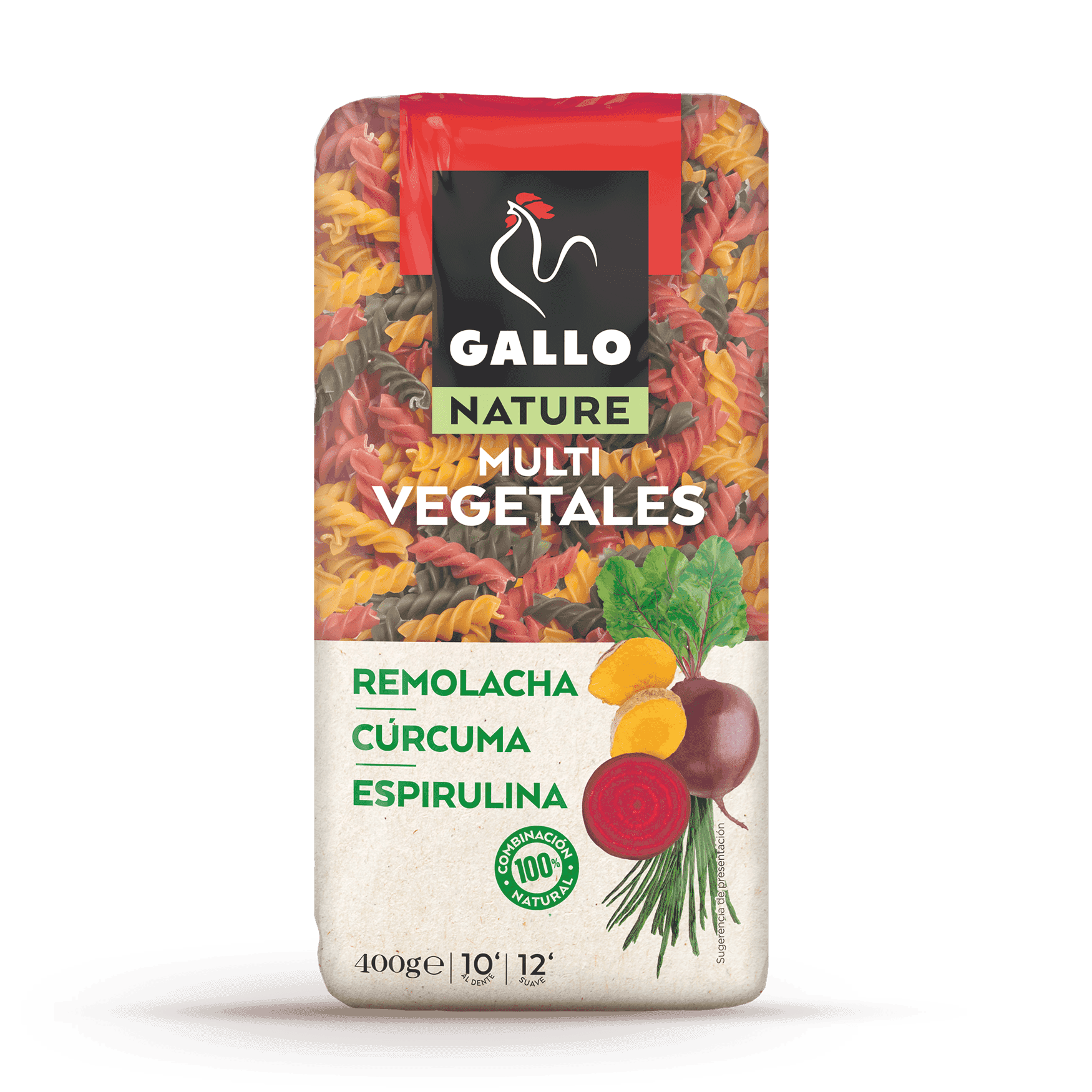 Gallo mezcla ingredientes 100% naturales para que puedas disfrutar de una pasta que combina lo mejor de los vegetales como la remolacha y la espirulina. La mejor opción para innovar en tus platos de pasta vegetal, que puedes cocinar tanto en frío como en caliente.