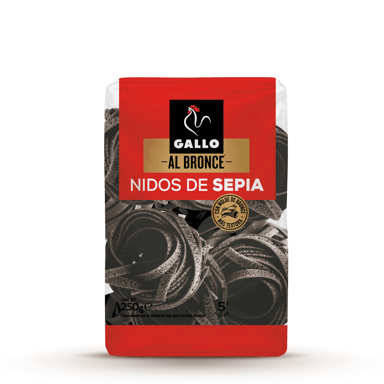 Sémola de trigo duro, tinta de sepia (3%).