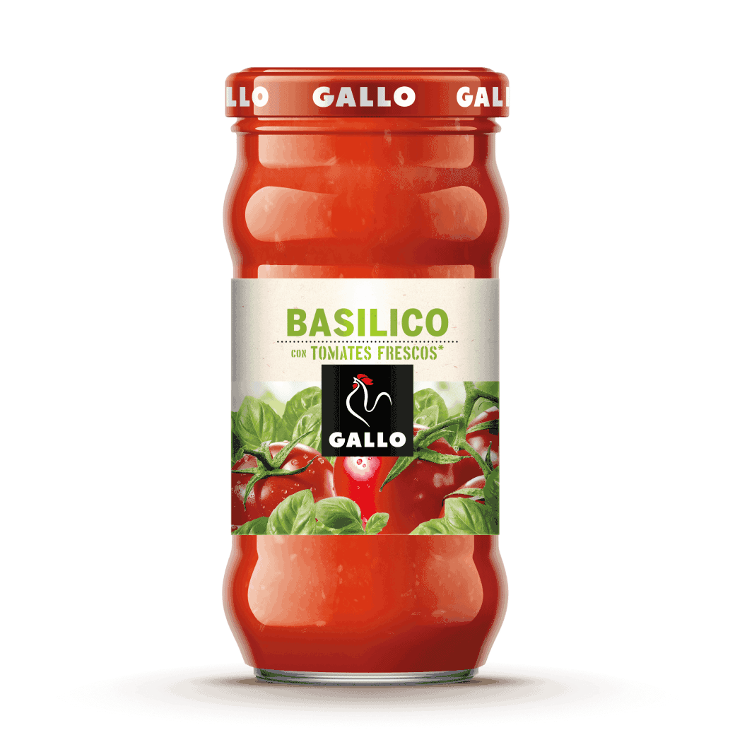 albahaca (2,2%), azúcar, sal, almidón modificado de maíz, aromas y ajo.
