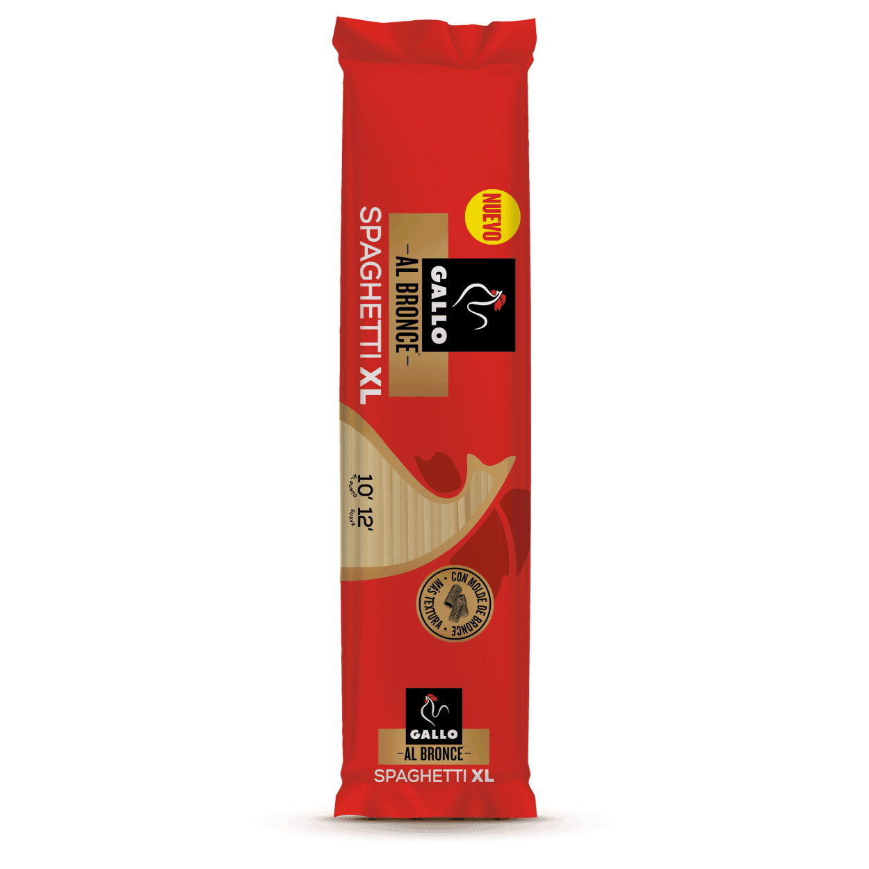 Nuestra gama Al Bronce está elaborada con trigos de gran selección y un proceso de elaboración exigente en el que trefilamos con moldes de bronce perpetuando la tradición. La sofisticación del espagueti tradicional llega con el Spaghetti XL, una especie de ocho que se sumerge perfectamente tanto con salsas ligeras como con más condimento.