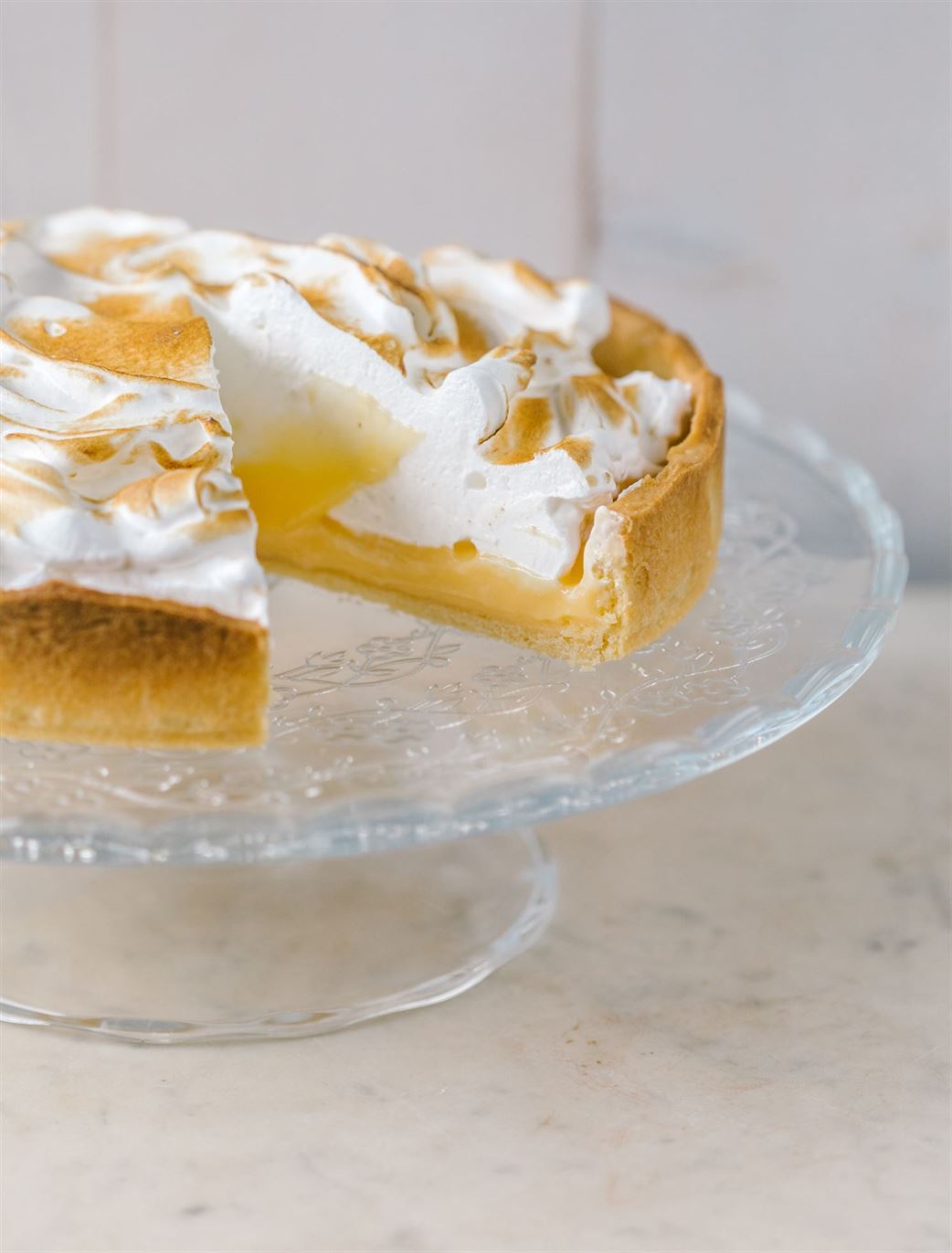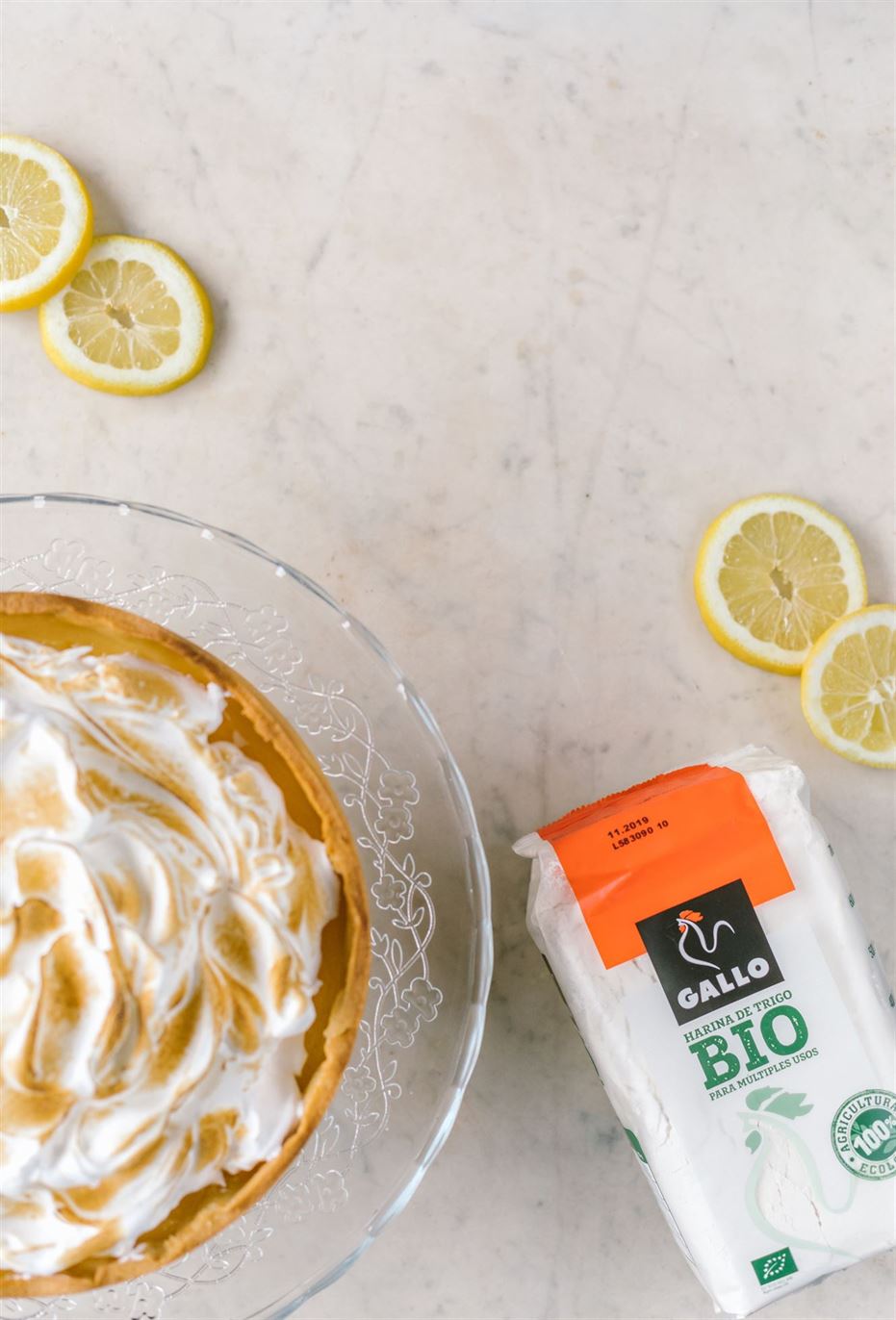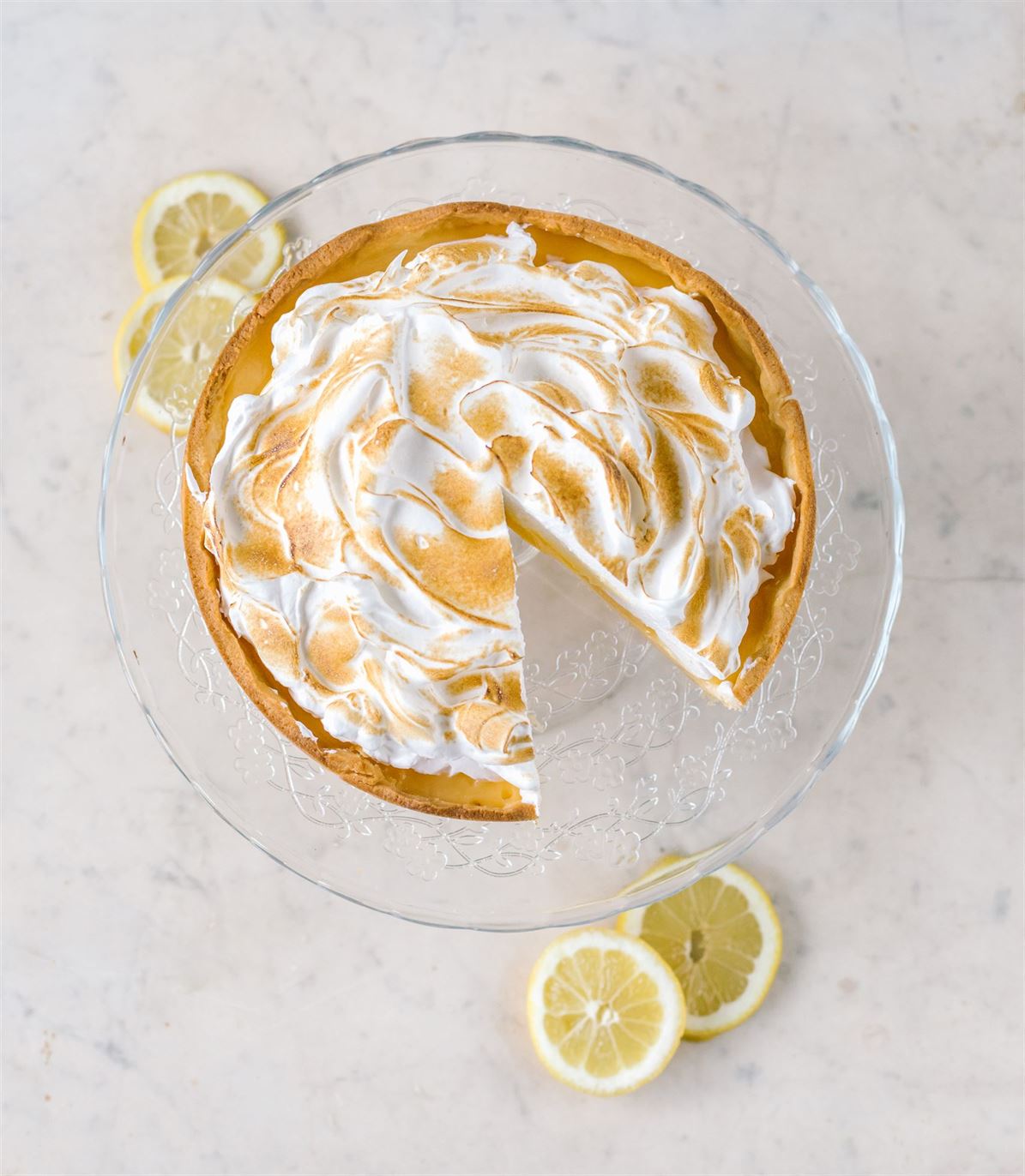 Rellenar la base fría con la crema de limón y terminar el pie con el merengue por encima. Servir a temperatura ambiente.