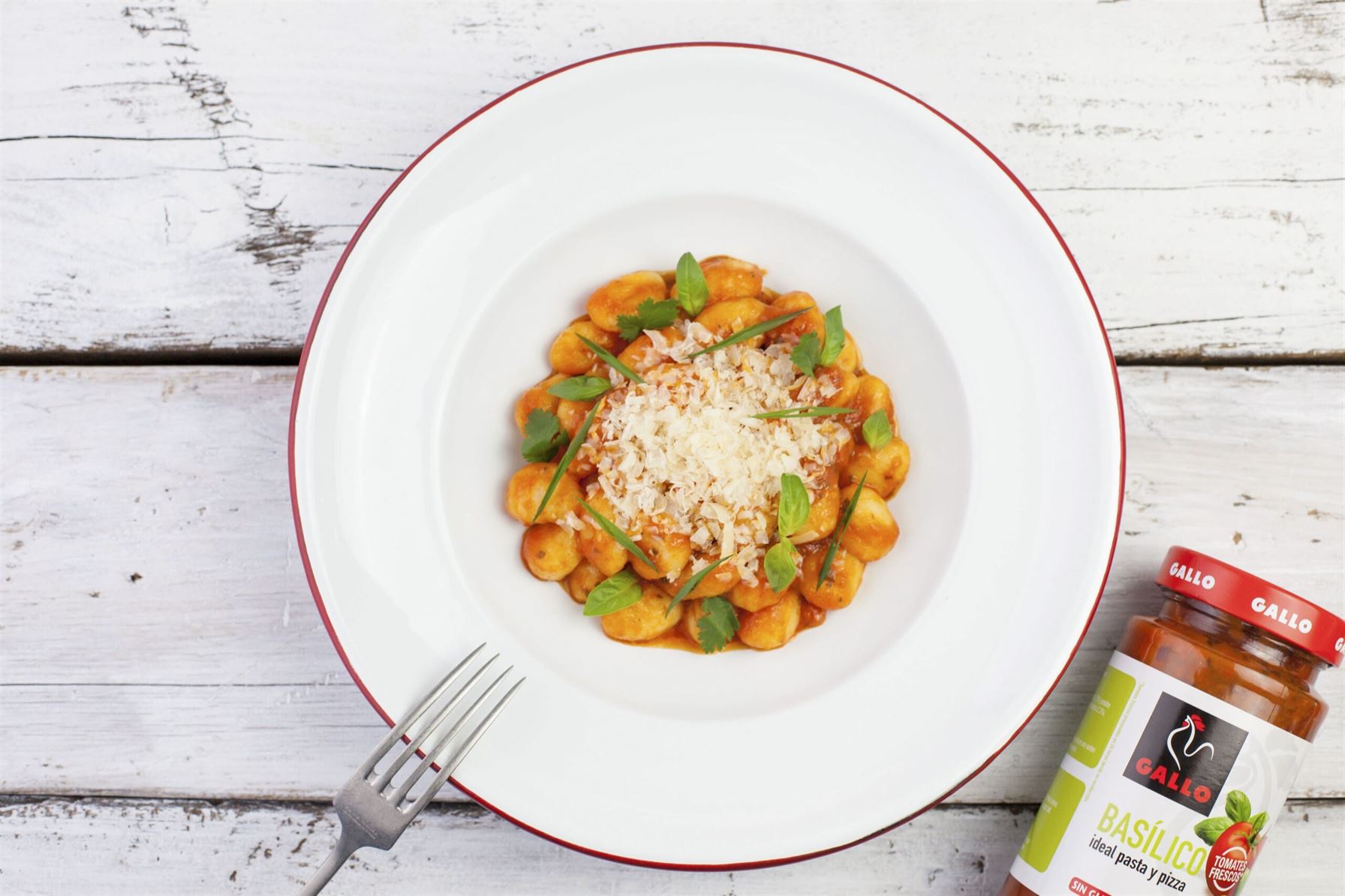 Saltear la pasta con la salsa de tomate GALLO. Salpimentar al gusto.