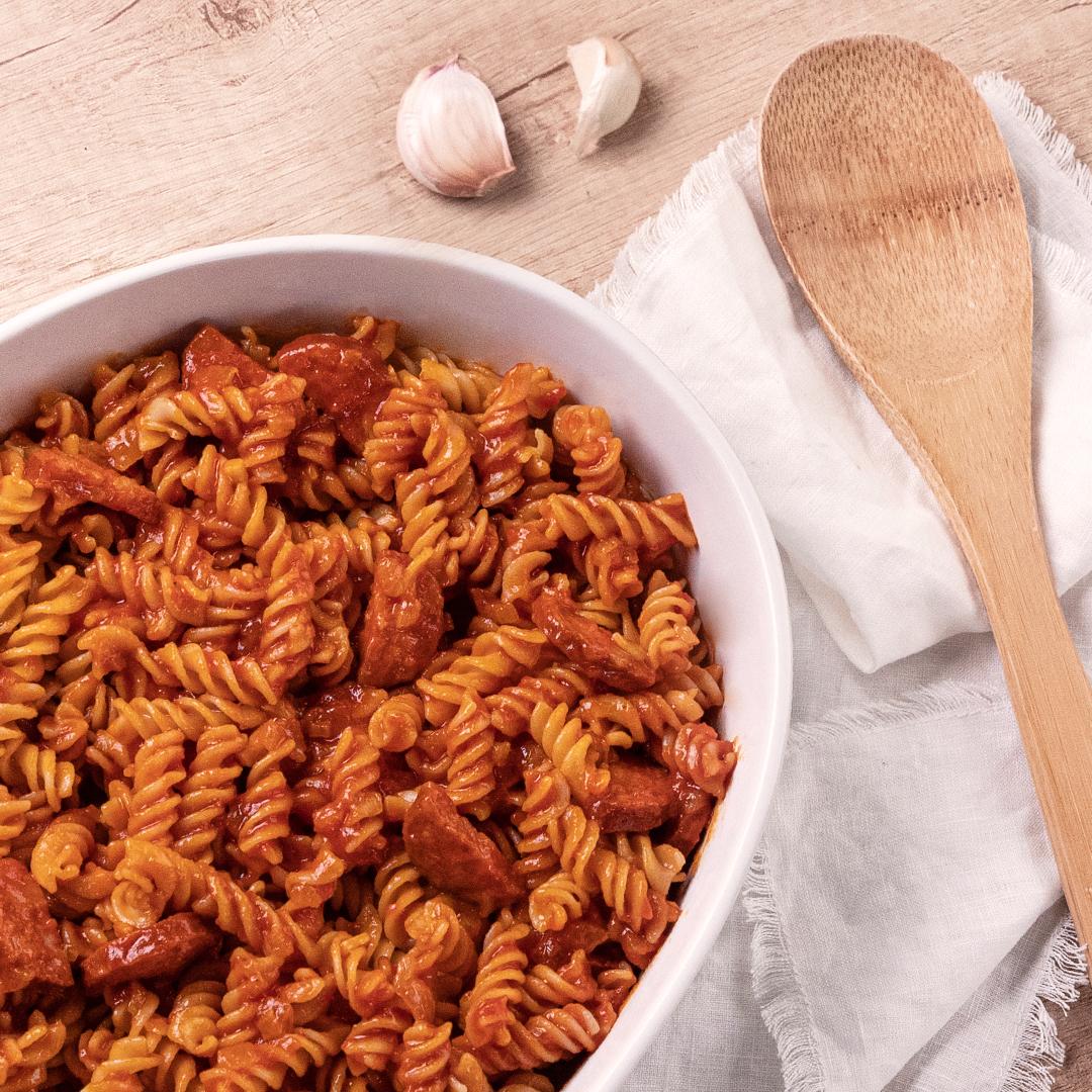 Hervimos la pasta en abundante agua según indicaciones del envase. Escurrimos, aliñamos con aceite de oliva.